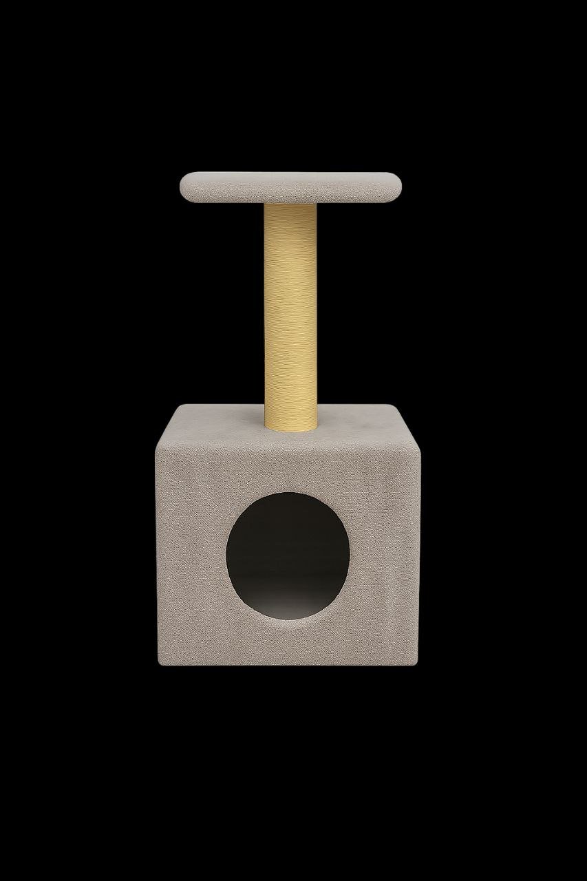 This modern gray cat condo is designed to complement contemporary interiors with its neutral, sleek appearance. The sisal-wrapped scratching post provides your cat with an ideal place to scratch, while the soft, gray plush base offers a cozy hideaway. Whether your cat is playing, scratching, or resting, this condo provides a functional yet stylish solution.
