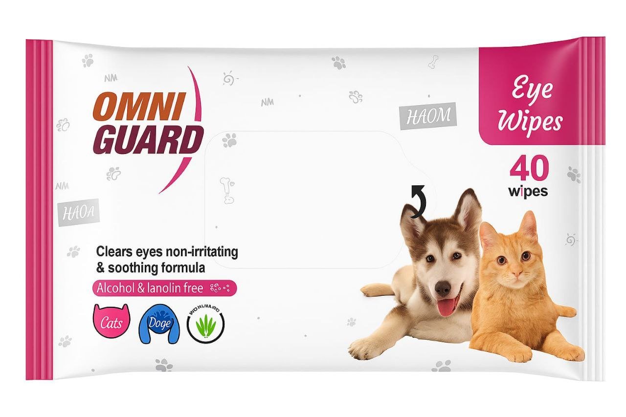 OMNI GUARD Eye Wipes for Cats & Dogs – Gentle, non-irritating wipes to clean around the eyes with a soothing, alcohol- and lanolin-free formula. Contains 40 wipes.